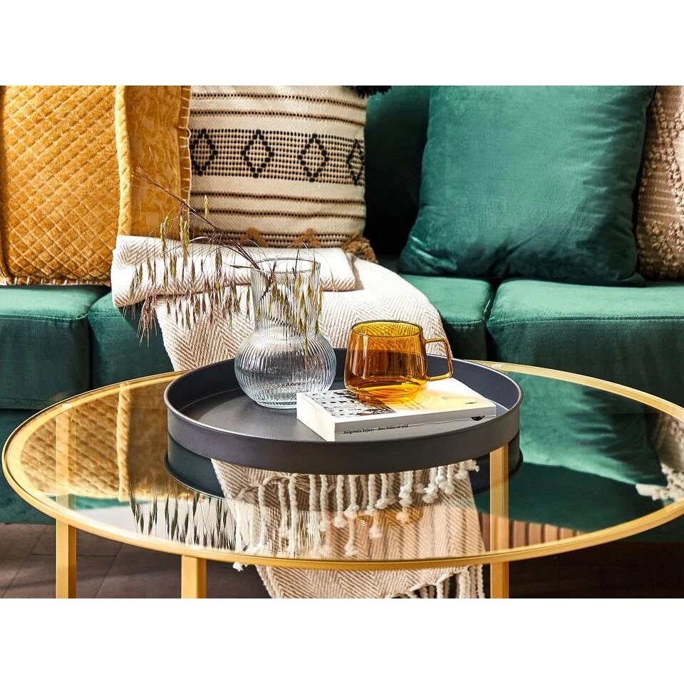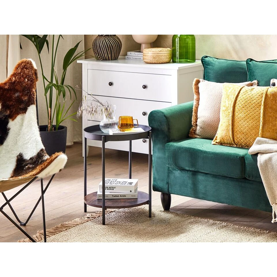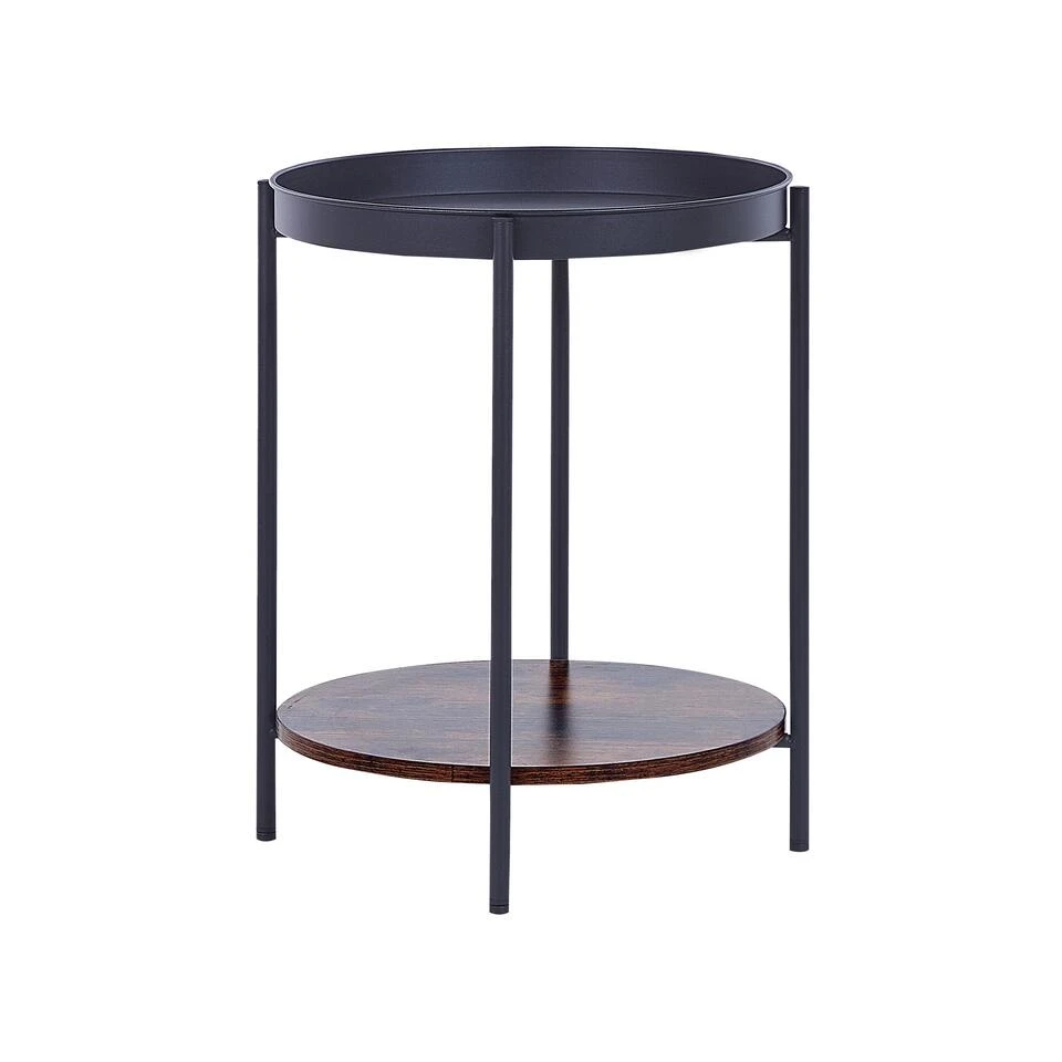 Bijzettafel met verwijderbaar blad en plank. Deze praktische bijzettafel is geschikt voor zowel de woonkamer als de hal. Dankzij een ronde plank en een afneembaar blad biedt het extra opbergruimte en is het perfect voor het presenteren van hapjes en drankjes. De combinatie van donkere materialen geeft het geheel een industrieel tintje.