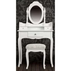 Kaptafel met spiegeleffect. Deze console vormt een perfecte combinatie van moderne en luxueuze trends. Door zijn vorm en spiegelende afwerking kan het je omgeving op een elegante en verrassende manier verruimen. Zijn eenvoudige en charmante vorm geeft het een aparte en unieke uitstraling. De console heeft twee laden voor al je accessoires, papieren of make-up.