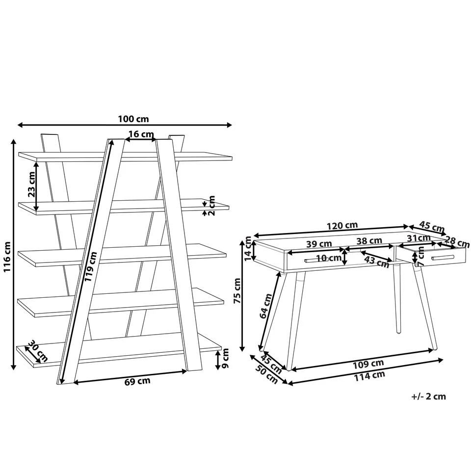 Aanbod omvat: 1 x Bureau, 1 x Boekenkast