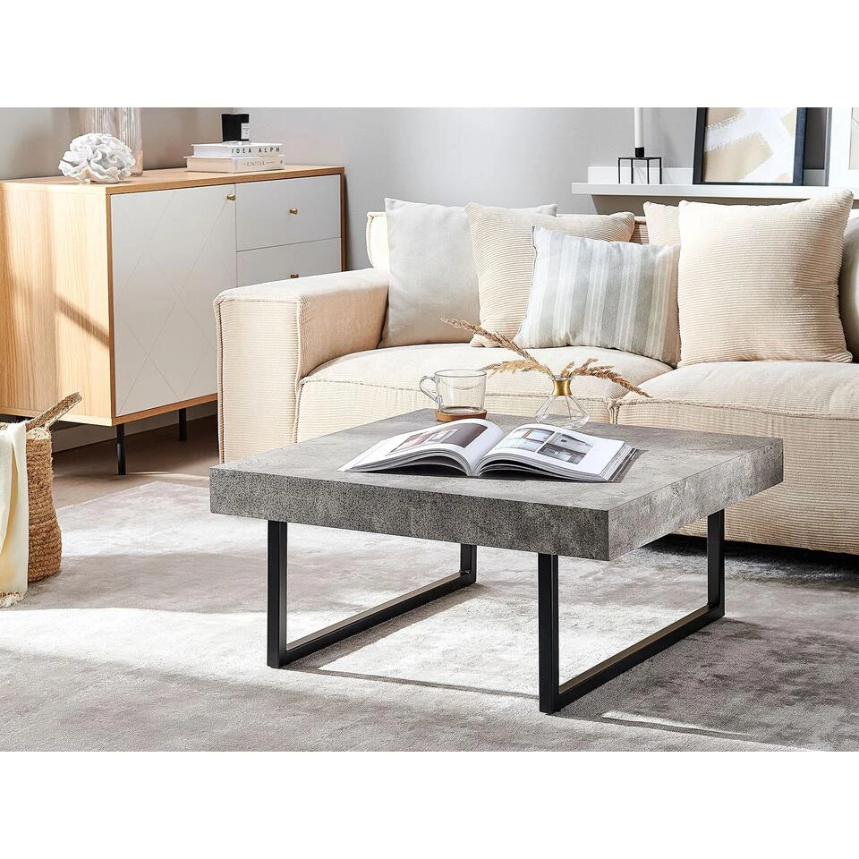 Vierkante salontafel met industriële uitstraling. Geef je woonkamer een moderne industriële uitstraling met deze vierkante salontafel. Een simplistische vorm gecombineerd met een strakke afwerking maakt het geheel zowel praktisch als visueel attractief. Het tafelblad is tegelijkertijd licht en onderhoudsvriendelijk en de poten geven het geheel een stoer karakter.