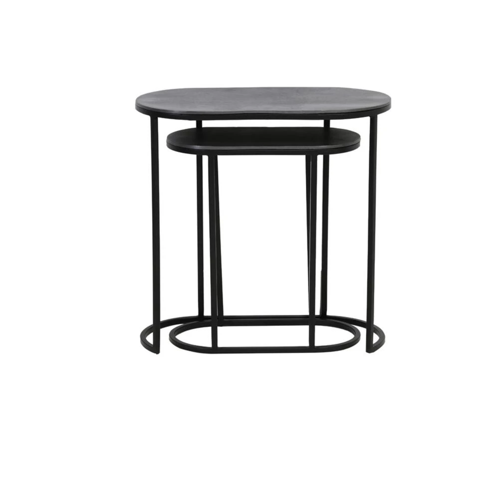 Bijzettafels zijn een musthave in elk interieur. Deze Bocov bijzettafeltjes hebben een antiek loden tafelblad en een zwart onderstel, wat een industrieel effect geeft. Deze tafeltjes komen in een set van twee, waardoor je niet meer hoeft na te denken welke tafeltjes wel of niet bij elkaar passen. De tafels passen onder elkaar waardoor ze niet zo veel ruimte in nemen. Je kan ze natuurlijk ook uit elkaar schuiven, wat zorgt voor een leuk en speels effect. Zet de bijzettafeltjes in de woonkamer bij de bank zodat je lekker je kopje koffie of snacks er op kan zetten. Wij raden wel altijd aan om onderzetters te gebruiken. De grote tafel heeft een maximale afmeting van 53x26x53 cm en de kleine tafel een maximale afmeting van 40x20x45 cm. De tafels zijn een product van het Nederlandse merk Light & Living.