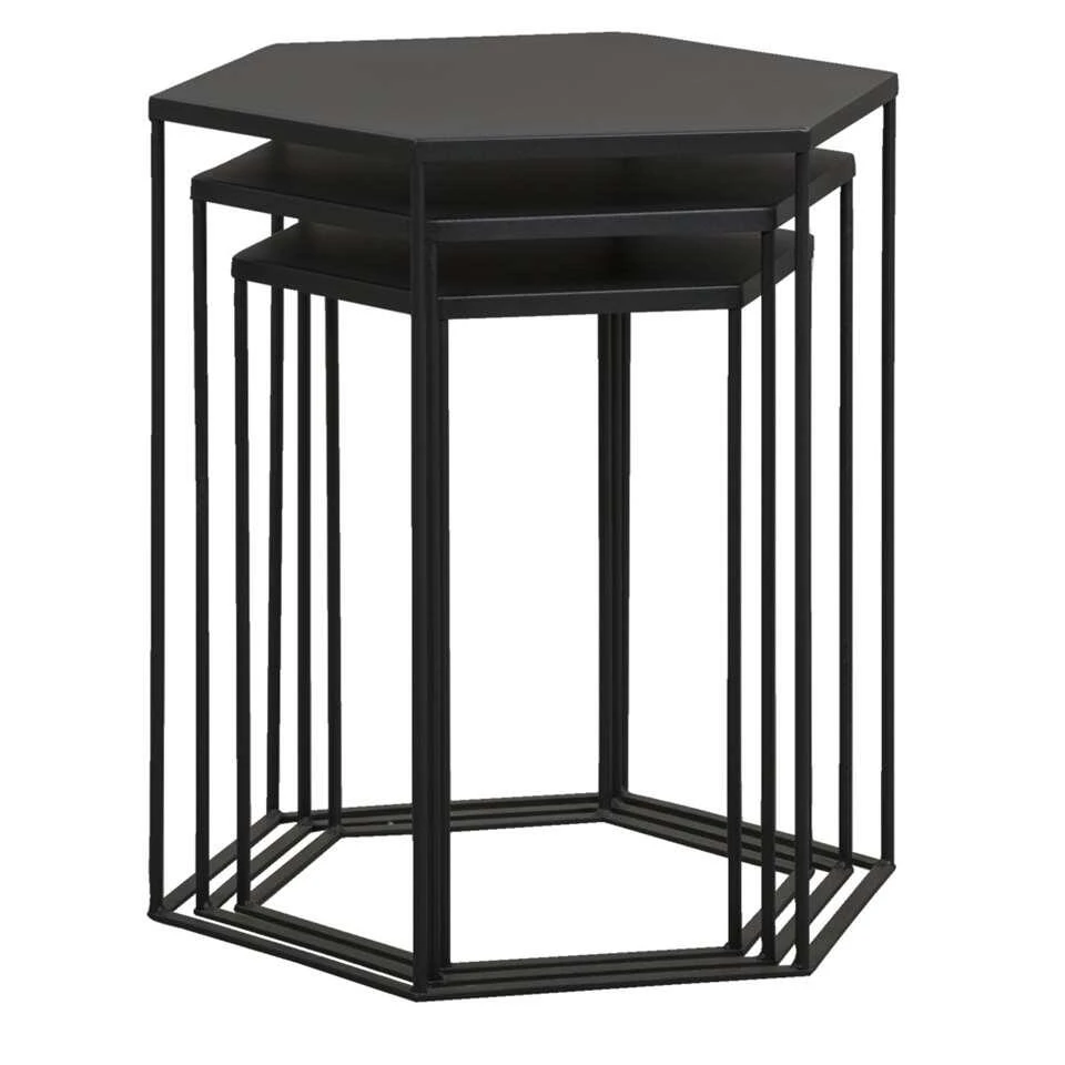 Bijzettafel Bologna is een set van drie handige bijzettafeltjes gemaakt van zwart metaal. Gebruik deze tafeltjes naast je bank, stoel of als nachtkastje. Je kunt er alle kanten mee op! Leg er je mobiele telefoon op en de afstandsbediening van de televisie. Combineer deze tafeltjes met andere kleine meubelen zoals krukjes en poefjes; helemaal volgens de trend van nu.
