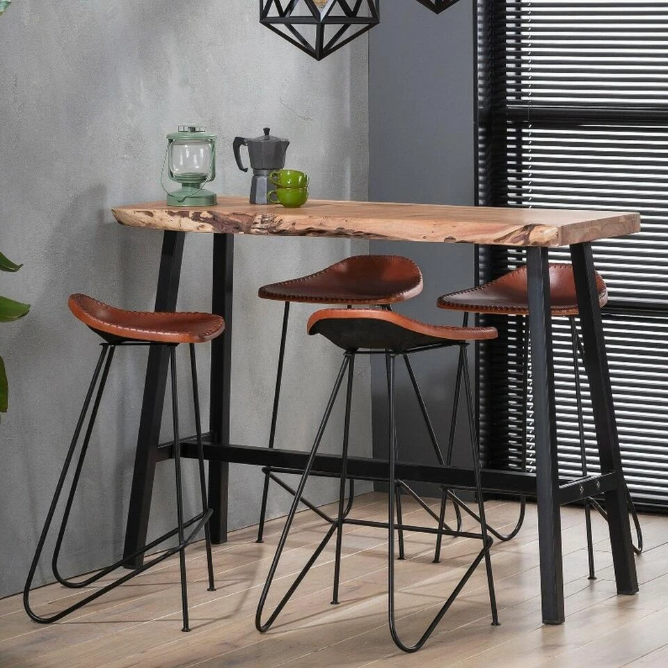 Tijd voor een feestje? Met deze geweldige bartafel Katia zal uw feestje zeker slagen. Het tafelblad is ongeveer 5 cm dik en vervaardigd uit opgedikt acaciahout in de vorm van een boomstam. Het metalen frame met een zwart gepoedercoate afwerking zorgt voor extra stevigheid in de constructie en biedt tevens een extra voetensteun. U kunt hier lekker aan zitten met barkrukken, maar als u de barkrukken even opzij zet heeft u gelijk een mooie statafel. Bartafel Katia maakt tevens onderdeel uit van een serie!