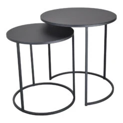 Deze trendy set ronde bijzettafels van LOFT42 bestaat uit een stoer en subtiel zwart metalen frame met een zwart metalen blad. Door de strakke afwerking en de stoere industriële uitstraling voelen deze tafels zich in bijna ieder interieur thuis!