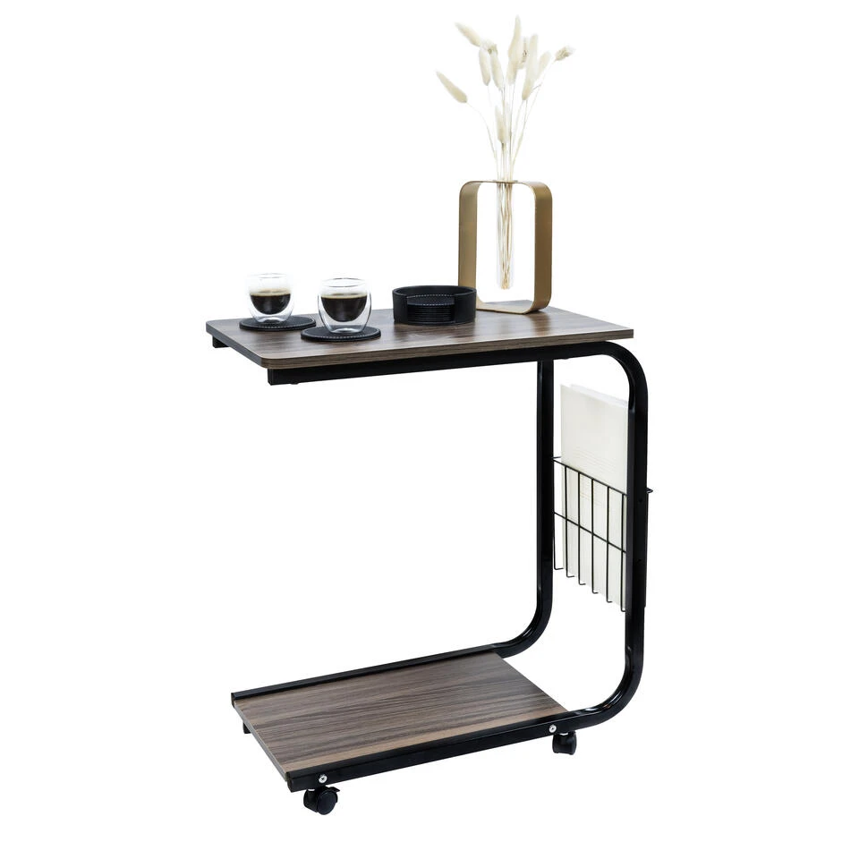 Languit televisie kijken of een boekje lezen op de bank? Ontbijtje op bed in het weekend? Maak het jezelf dan heerlijk gemakkelijk met deze QUVIO Bijzettafel op wieltjes met tijdschriftenrek! Met een maximale afmeting van 30 x 48 x 58 cm (lxbxh) is het meubel perfect om naast de bank, de tafel of het bed te zetten. Uiteraard kan het tafeltje ook als nachtkastje gebruikt worden of als keukentrolley. Lekker veelzijdig! Het zwarte frame is van metaal gemaakt en de planken zijn van hout. Deze sterke materialen zorgen ervoor dat het product zijn stevigheid behoudt. Met het moderne, strakke design en de neutrale kleuren past deze bijzettafel in elk interieur.