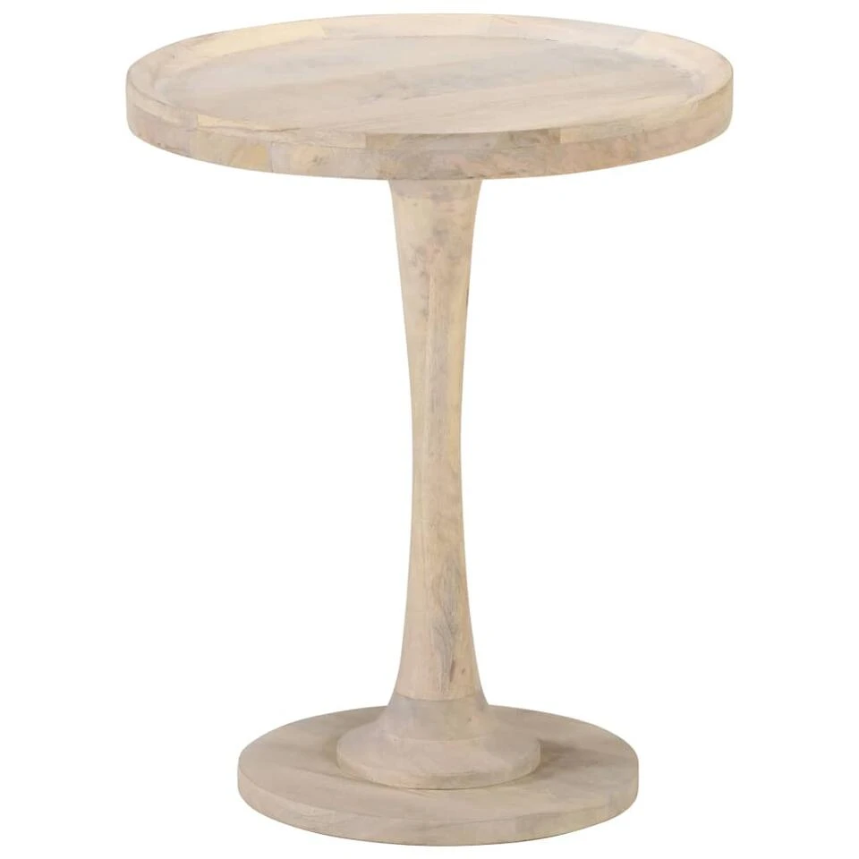 Deze accenttafel is handgemaakt van massief mangohout met een natuurlijk bleekafwerking. Mangohout is een tropisch hardhout dat veel gewicht kan dragen. Hij is bestand tegen slijtage, waardoor hij stabiel en duurzaam is. Het vakmanschap en de prachtige houtnerven maken elk meubelstuk uniek en net iets anders dan de rest. Het stevige tafelblad is perfect om decoratieve objecten, fotolijsten en kamerplanten op te plaatsen. Dit bijzettafeltje kan ook gebruikt worden als salontafel, telefoontafeltje, enz.