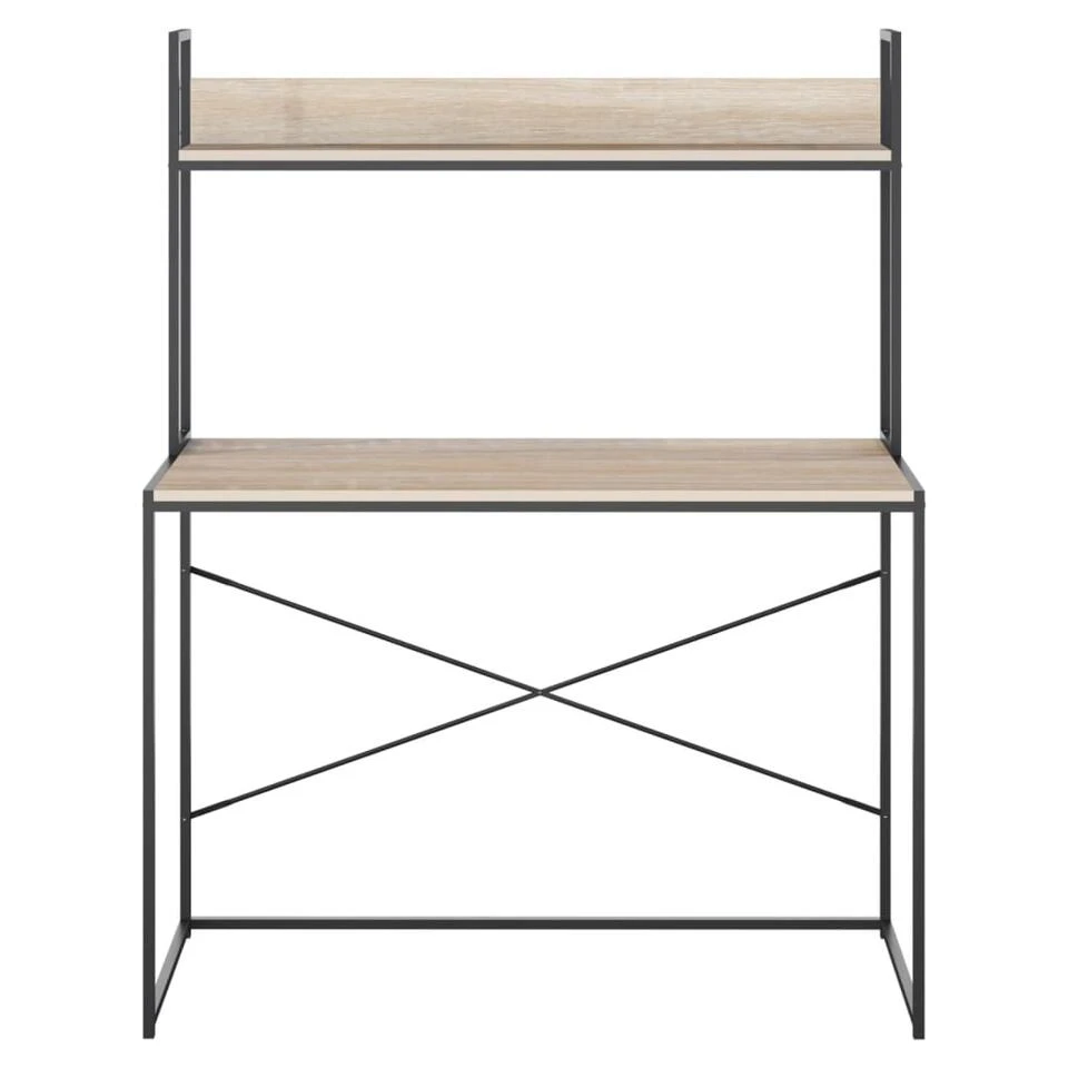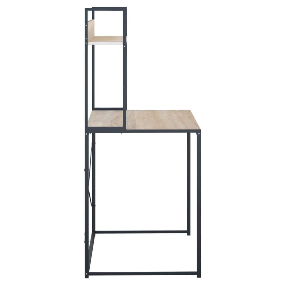 Het bureau is ontworpen met een schap voor het ordenen van je boeken of voor het weergeven van decoratieve spullen. Het schrijfbureau is gemaakt van spaanplaat en gepoedercoat metaal waardoor het stabiel, stevig en duurzaam is. Het metalen frame geeft het bureau een industriële stijl en geeft een vleugje unieke charme aan je interieur. Til je interieur naar een hoger niveau met ons moderne bureau!