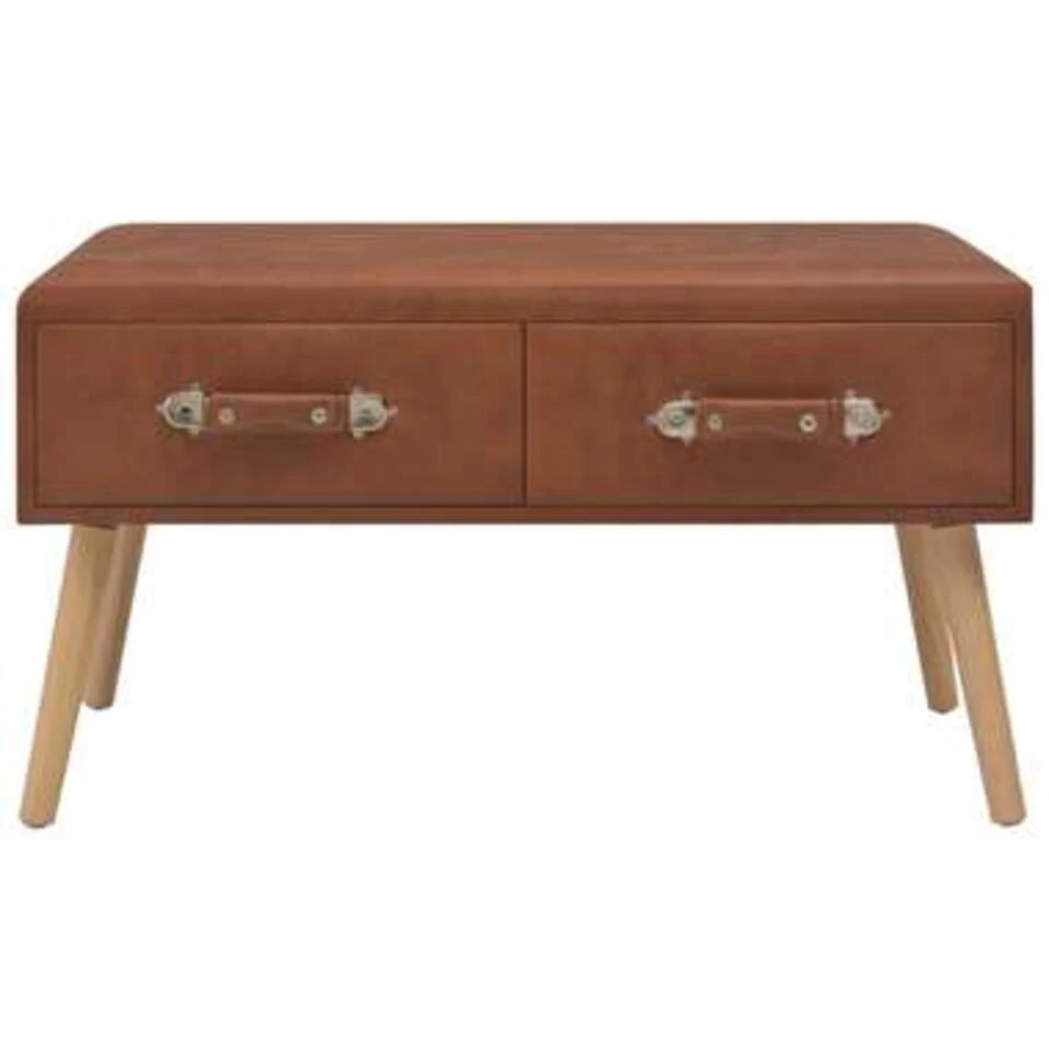 Deze salontafel is vakkundig vervaardigd uit kunstleer en massief grenenhout, waardoor het slijtvast en stevig is. Het kunstlederen kastje heeft twee soepel lopende lades, waardoor er voldoende ruimte is om kleinere spulletjes georganiseerd en binnen handbereik te houden. Daarnaast kan het meubel ook worden gebruikt als nachtkastje of als bankje. Het is eenvoudig te monteren.
